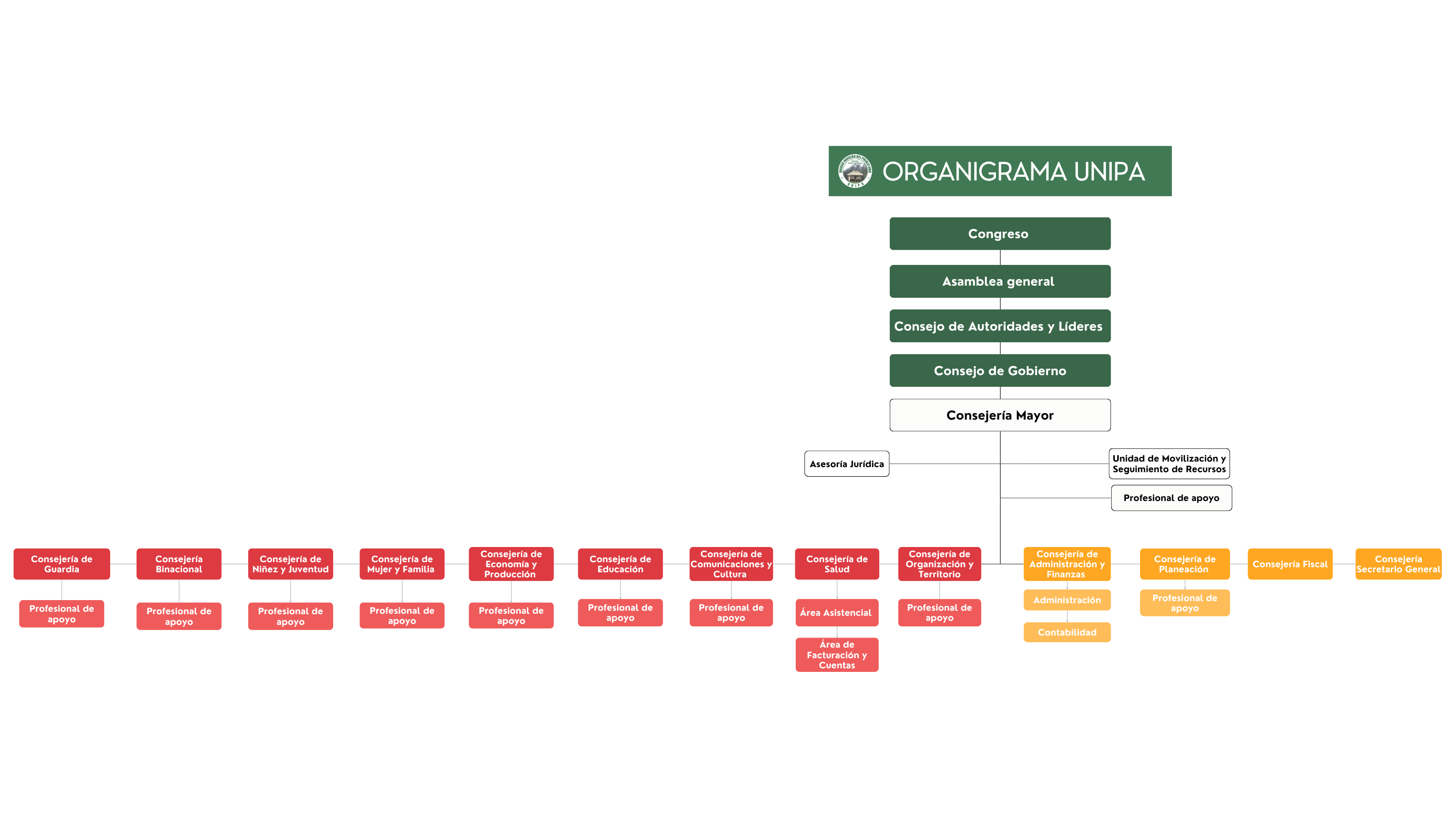 El Consejero Secretario General es la persona encargada de proponer, programar, agendar, citar, coordinar, dirigir las diferentes reuniones de la Organización, así como llevar la relatoría y actas de las mismas, siendo el puente político entre los resguardos y cabildos pertenecientes a UNIPA y la misma organización, así como la relación política con entidades nacionales e internacionales de carácter público y privado, participando en las reuniones internas de cada resguardo, coadyuvando con la administración de la Organización junto con el Consejero Mayor.